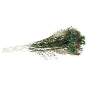 Fresh and clean, these extra long large eye peacock feathers are excellent for an arrangement of feathers or decorations. Naturally varying eye sizes, of course. The "eye" part is generally 1½ - 2 inches across, a few smaller, a few larger Well defined eyes, soft, good coloring Lovely, full plumage, appropriate for decorative arrangements Extra long, 35-40 inches