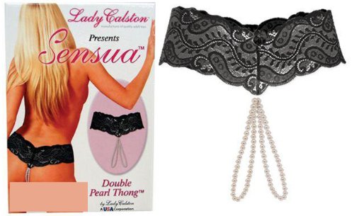 Lady Calston Pearl Thong, Black, Regular Size Comes in attractive gift box Stretchy lace material fits most Hand wash in warm water with mild detergent